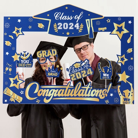 Tốt nghiệp ảnh gian hàng đạo cụ lớp 2024 tốt nghiệp bên trang trí congrats GRAD gian hàng khung để trang trí tốt nghiệp