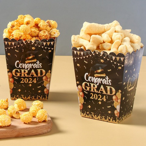 Giấy tốt nghiệp kỷ niệm hộp bỏng ngô đỏ màu xanh tốt nghiệp lớp trang trí 2024 hộp bỏng ngô vàng đen