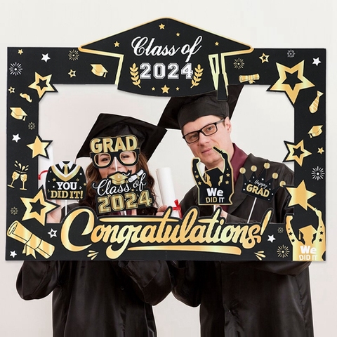 Tốt nghiệp ảnh tự sướng khung ảnh vàng đen tốt nghiệp gian hàng đạo cụ lớp 2024 cho bữa tiệc tốt nghiệp nguồn cung cấp trang trí