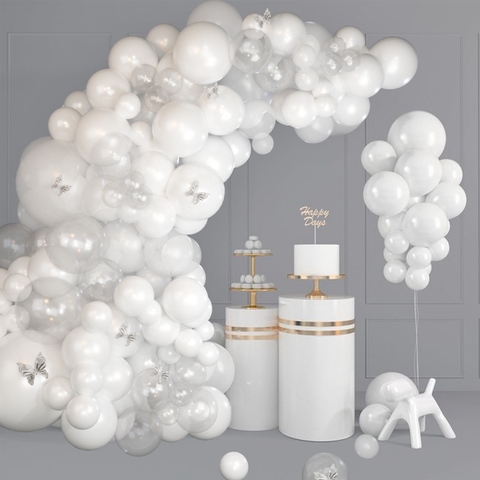 مجموعة قوس إكليل بالونات بيضاء نقية شفافة بالونات مطاطية مع ملصق فراشة بالونات حفلات الزفاف وأعياد الميلاد