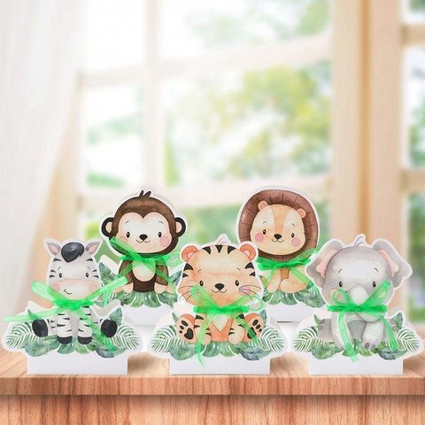 صندوق هدايا موضوع حيوانات الغابة 12 علبة هدايا كرتونية ثلاثية الأبعاد لتغليف أسد نمر حفلات الزفاف صندوق حلوى للعطلات مورد ديكورات الحفلات