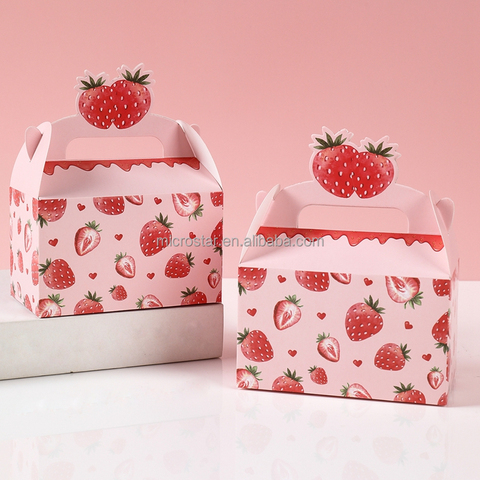 Çilek doğum günü partisi süslemeleri tedavi kutuları meyve tema Goodie şeker kutuları parti Favor kutuları