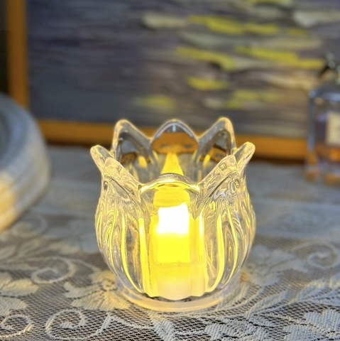 Ev dekor şeffaf akrilik lale şekilli Led dekoratif mumlar lamba çay işık kupası mumlar Tealight mumluk konteyner kavanoz