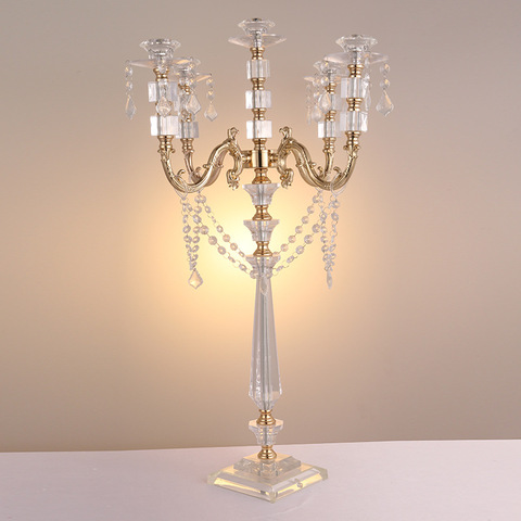 유럽 웨딩 센터 피스 캔들 홀더 웨딩 장식 도로 리드 5 헤드 아크릴 크리스탈 촛대 촛대 촛대