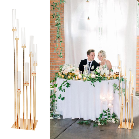 도매 골드 웨딩 센터 피스 새로운 기능 금속 촛대 홀더 웨딩 센터 피스 테이블 장식 웨딩 파티