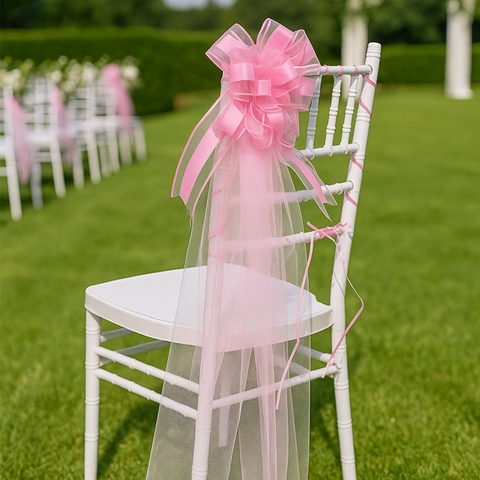 5pcs Pink Bowknot Organza Gauze Set Wedding Party Arch & Chair Back Decoração com Snow Gauze Effect para Festas Eventos