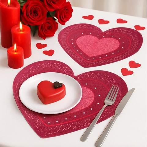 Em forma de coração dos Namorados Dia Placemats Diâmetro 38*34cm Linho 4pcs Dia dos Namorados Data Placemats Casamento Tabela Decoração